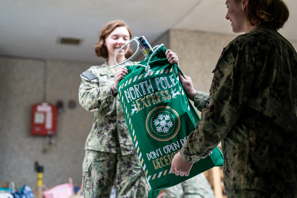 Specially named The Giving Tree at the Naval Academy, the program, like other Angel Tree programs, compiles information about each child, a.k.a. “Angel” participating, including their age, clothing size, and gift wishes. Each child’s information is then written down on a paper angel-shaped slip to be hung as an ornament on the Angel/Giving Tree. Once decorated, the U.S. Naval Academy midshipmen host a special tree lighting ceremony to officially commemorate the start of the donation season. Donors are then matched with an Angel (or multiple angels) from the tree to get gifts for. Gifts widely range from toys, bicycles, instruments, electronics, shoes, winter clothing, and more. Once purchased, donors place the unwrapped gifts under the Angel Tree for The Salvation Army team to wrap and give out. The presents are eventually hand-given to the children with anonymous tags/cards from their donor.